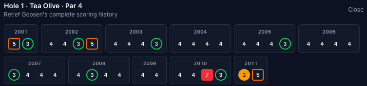 The hole-out eagle is an anomaly but Goosen actually played this hole better than anyone in our dataset (min. 20 rounds).