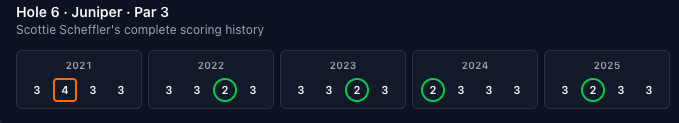 Up-and-comer Scottie Scheffler has dominated the second hole. Double checked and he went -4 in 2020 also which would have made his lead here even more. Hot take but this guy is pretty good.